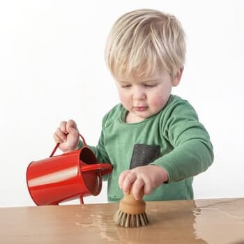 A brush made of untreated beechwood and Union Fiber for washing and scrubbing a table. 2 ½” diameter.