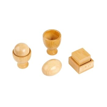 With Fit the shape, grip strength is trained by placing and removing shapes. By experimenting with combinations, children discover through play how shapes fit together. This strengthens their logical thinking and spatial awareness. Includes three shapes and matching trays; sphere, ovoid, and cube. Approximately 2 ½” high. Ages 7-11 months.
