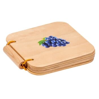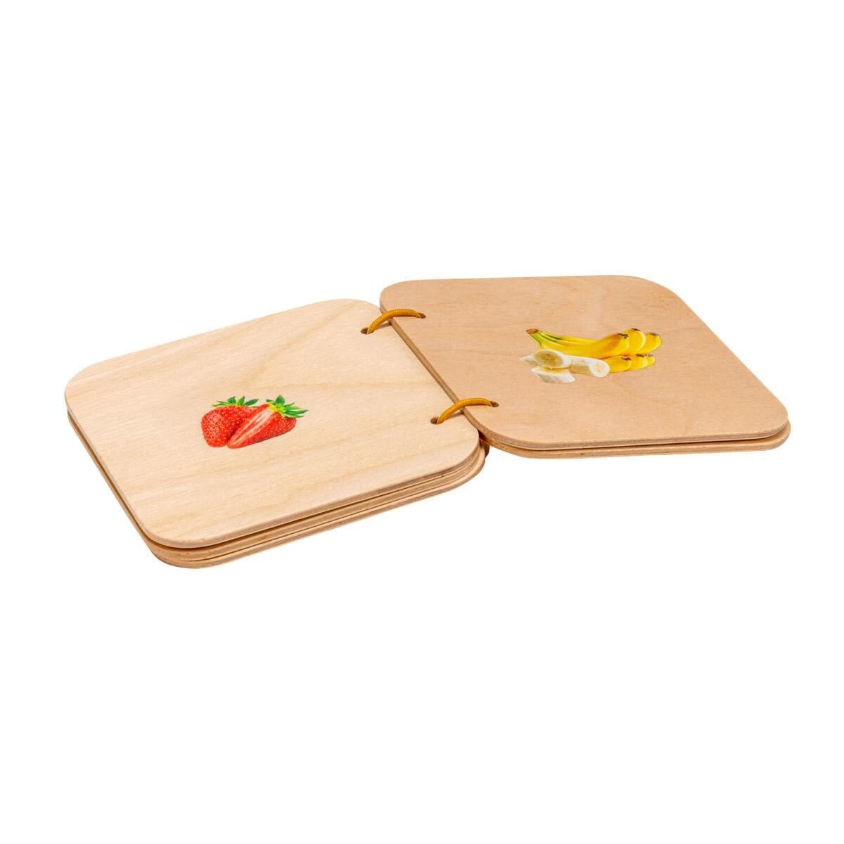 This ideal first book is perfectly suited for reading with your baby. Books are made of birch plywood. Each includes 10 pages of fruit photos. Book is 4 ¾” x 4 ¾”. Ages 6-12 months.