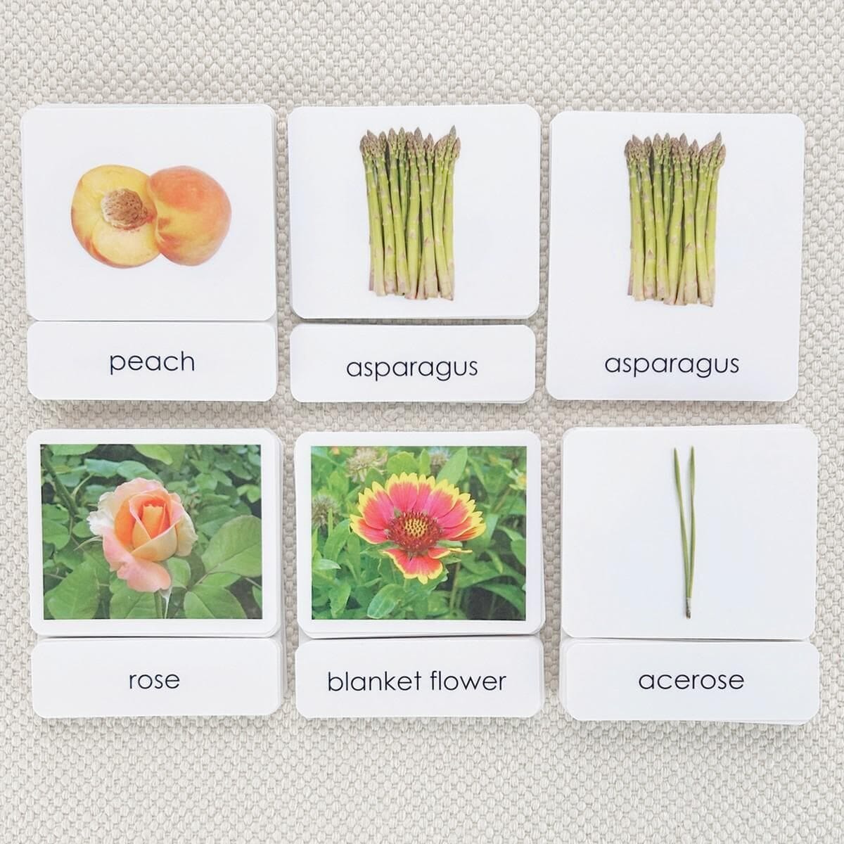 These 3-part reading cards use real photos to clearly isolate each subject. The set includes the following five packets: Garden Flowers, Wildflowers, Vegetables, Fruit, Leaf Shapes (Botany Cabinet). The 3-part format is designed for independent reading. Students lay out the photo card, read and match the word labels to the photo cards, and then use the control cards to check their own work.