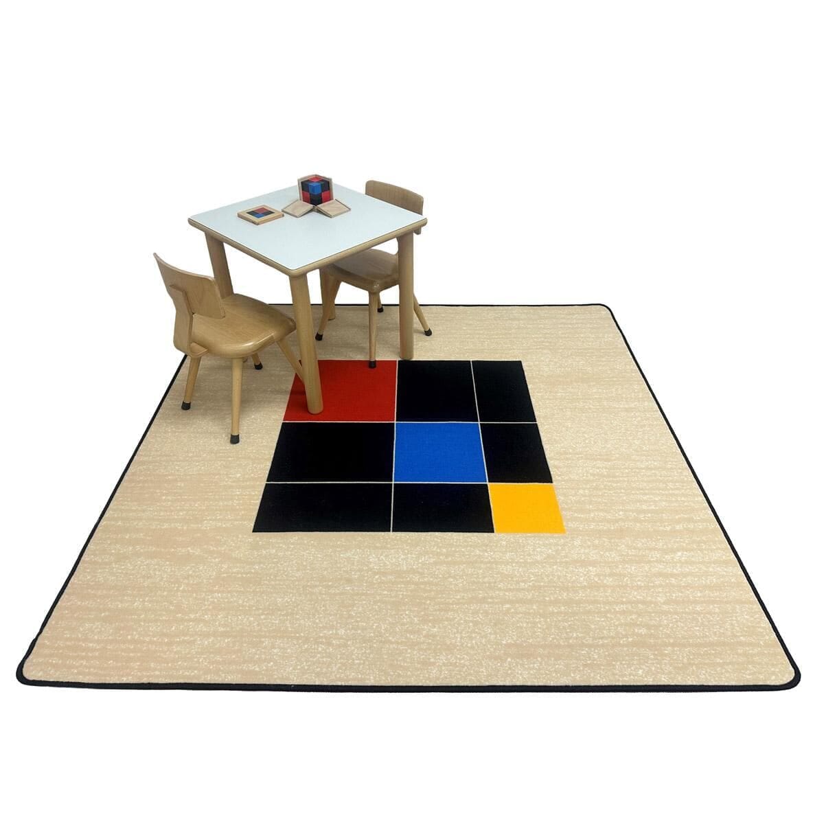 Bring the beauty and precision of classic Montessori materials to your learning space with this striking carpet, inspired by the lid of the Trinomial Cube box. Perfect for classrooms, homeschool environments, or Montessori-inspired play areas, they invite exploration, conversation, and spatial learning. Crafted with high-quality materials for durability and comfort, these carpets combine Montessori elegance with everyday practicality. The patented backing helps prevent wrinkling and creasing and is unmatched in softness and flexibility providing you with quality performance in your area carpets. Lifetime Limited Abrasive Wear Warranty. No Fault Edge Warranty covers the serge edge, no questions asked. True Stain Blocker Technology makes clean-up a cinch. Use hot water only, no harsh detergents necessary; safe for kids.